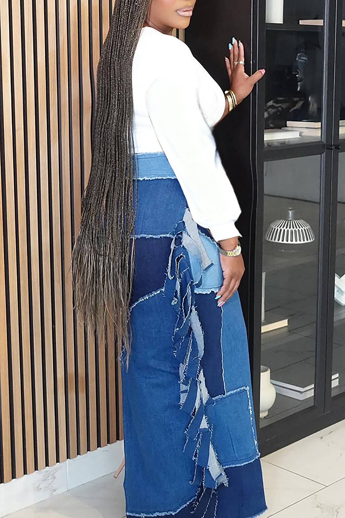 Redefine denim with fearless flair! The Edge Theory Patchwork Skirt is where bold texture meets effortless cool. Made from contrasting denim panels, this midi silhouette delivers a raw, handmade feel with fringe trim and asymmetrical seams. It hugs the waist and flows straight for a powerful, art-inspired vibe that’s equal parts edge and elegance.
