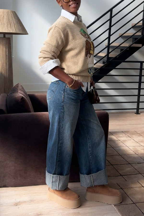Stay on trend this season in our new stylish, round neck sweater. We especially love the animal print fabric and think this piece will be a new favorite in your closet!