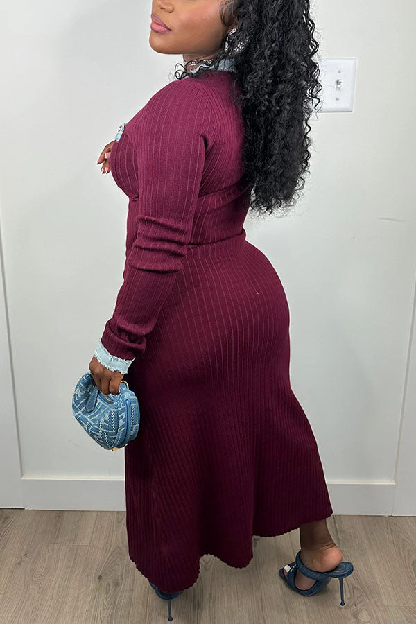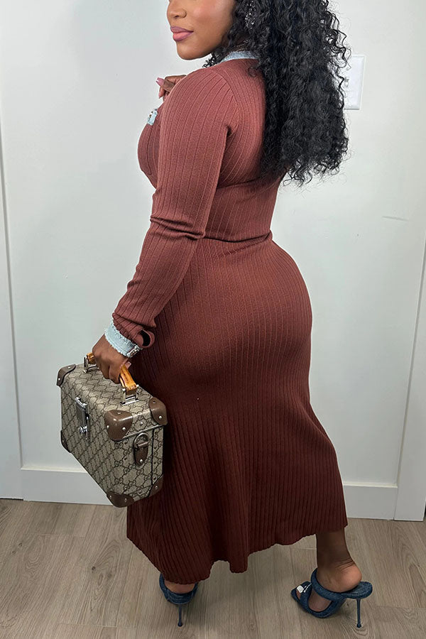 Stay on trend this season in our new stylish, round neck dress. We especially love the patchwork fabric and think this piece will be a new favorite in your closet!