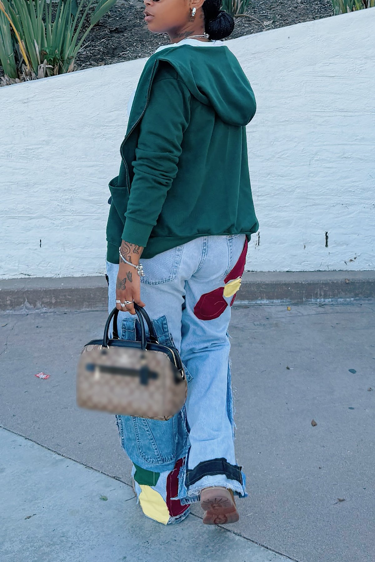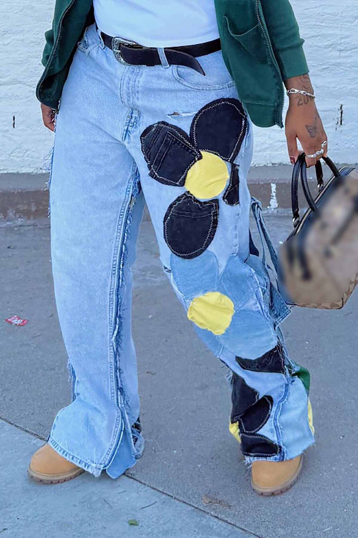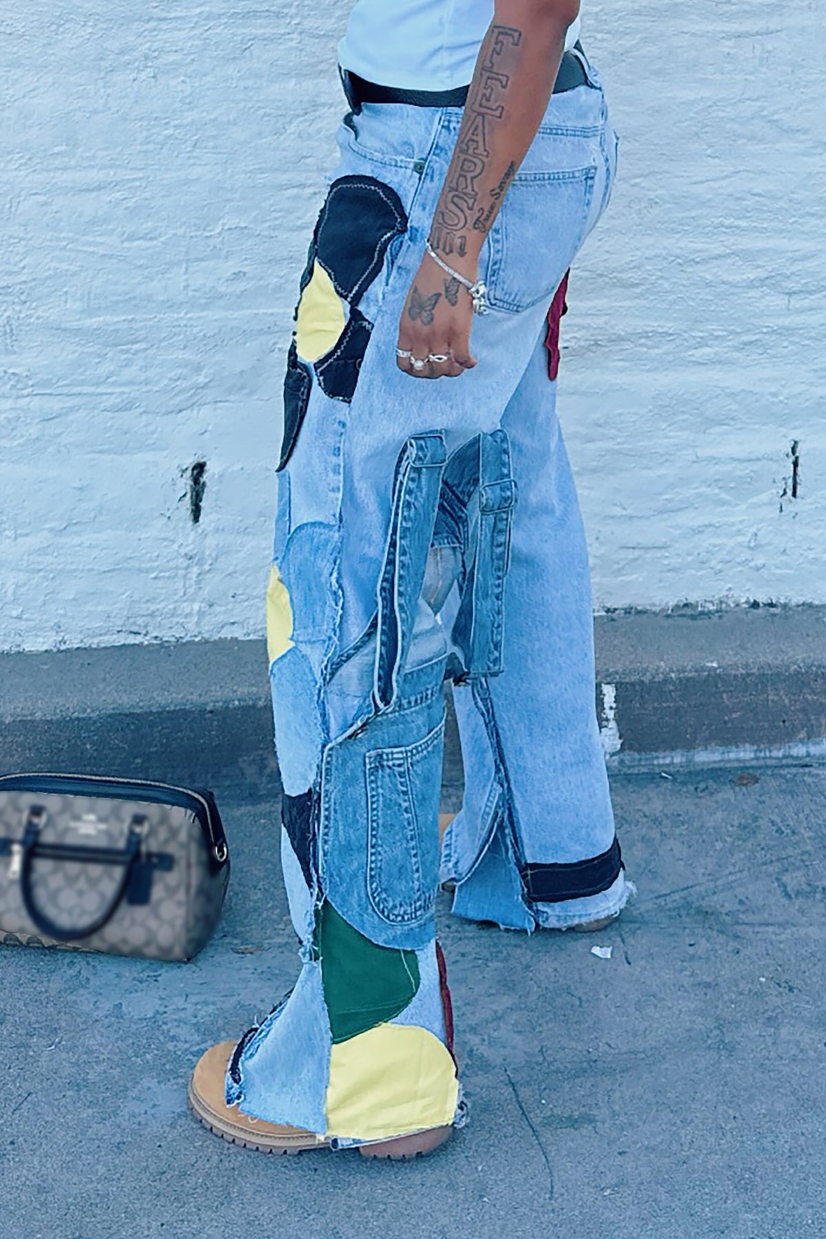 Stay on trend this season in our new cool, wide leg jeans. We especially love the patchwork fabric and think this piece will be a new favorite in your closet!