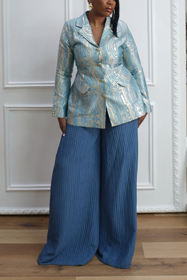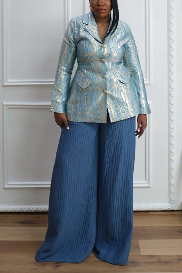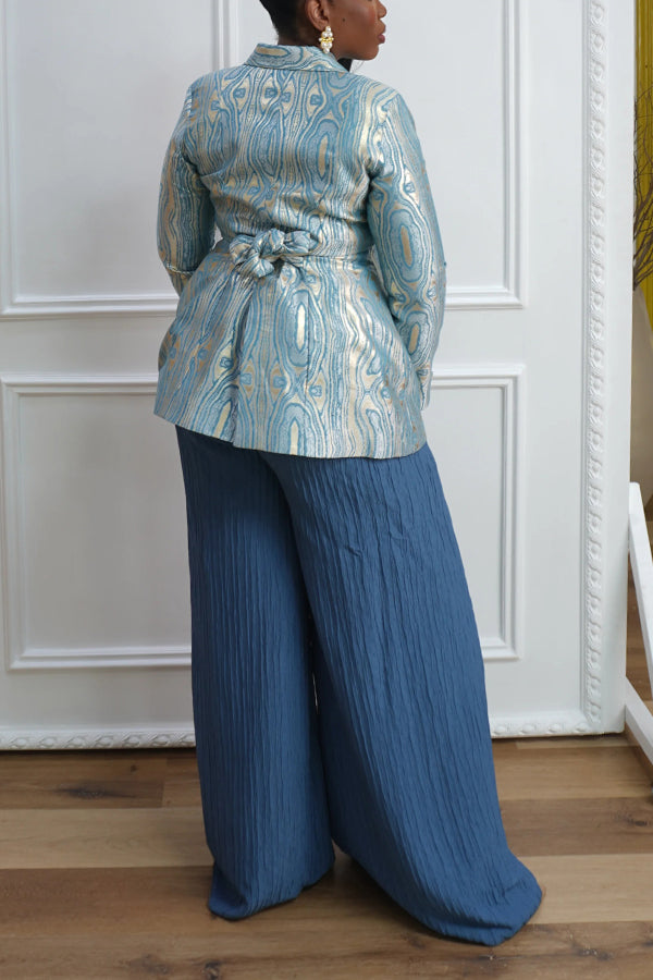 Stay on trend this season in our new stylish, lapel set. We especially love the abstract print fabric and think this piece will be a new favorite in your closet!