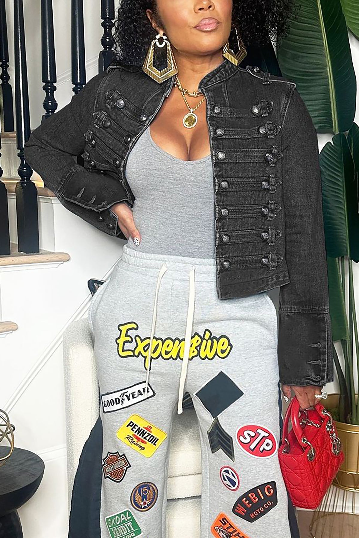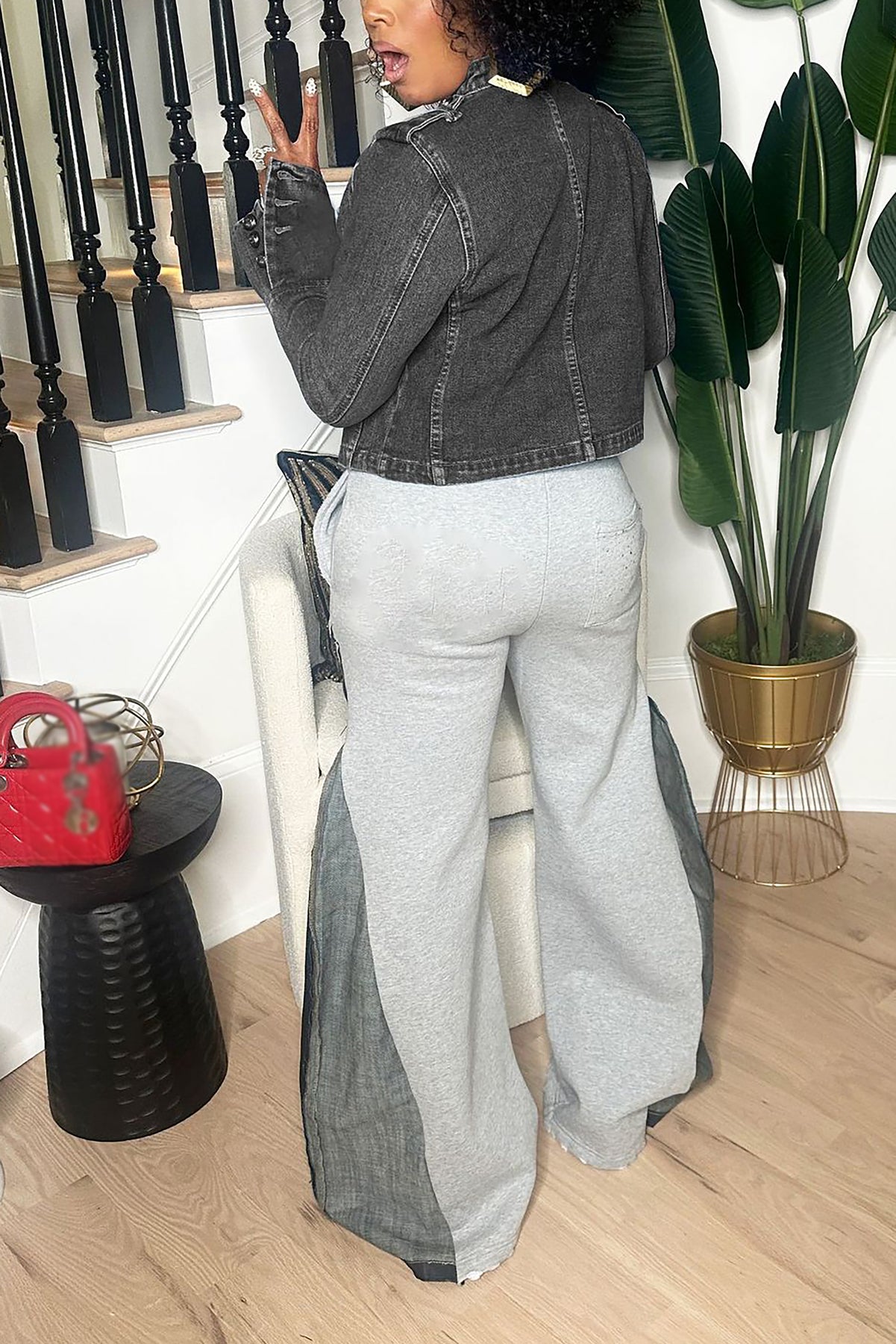 Vintage Symmetrical Breasted Patchwork Denim Jacket*