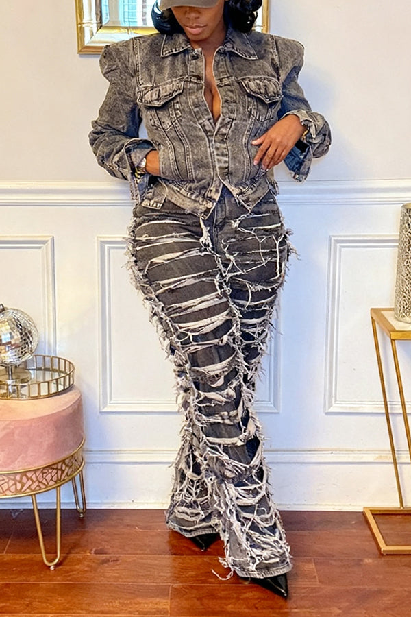 Street Style Ruched Denim Cropped Jacket