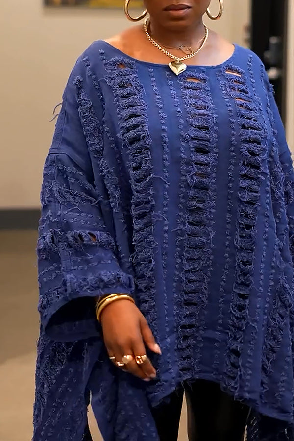 Stay on trend this season in our new relaxed, round neck top. We especially love the distressed fabric and think this piece will be a new favorite in your closet!