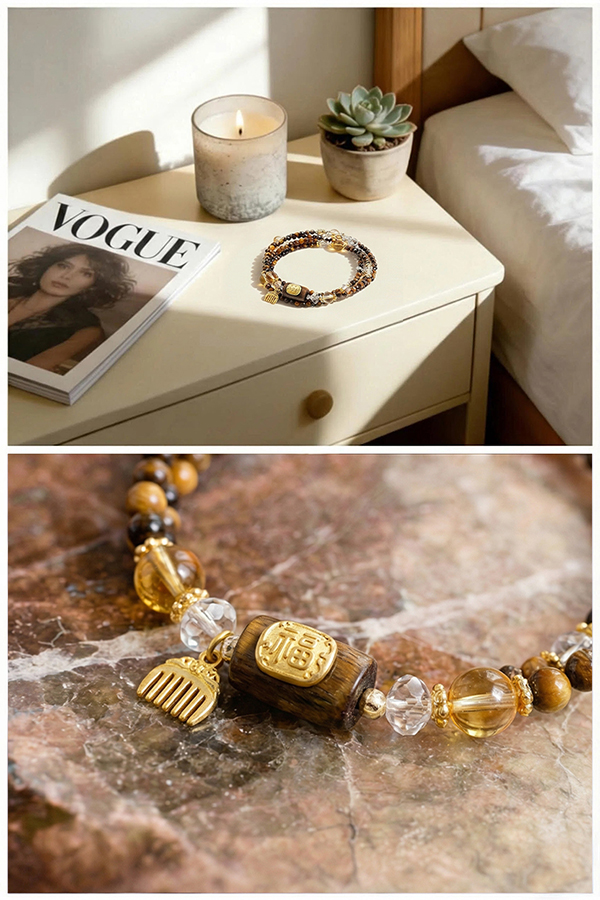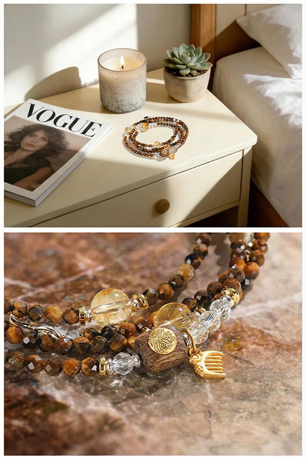 Natural Agarwood Tiger's Eye Crystal Beaded Bracelet