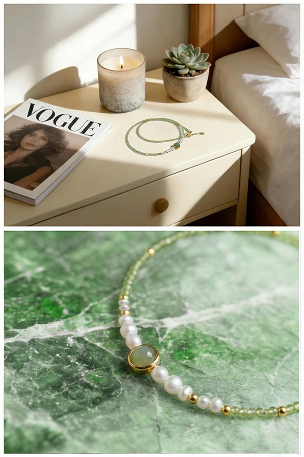 Natural Peridot Crystal Three-strand Beaded Bracelet