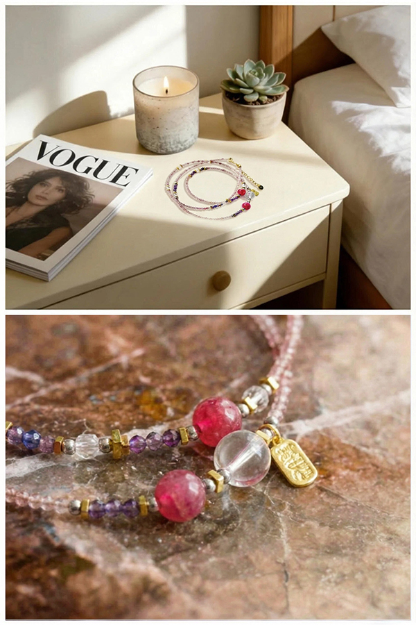 Natural Crystal Safety Buckle Double Strand Bracelet