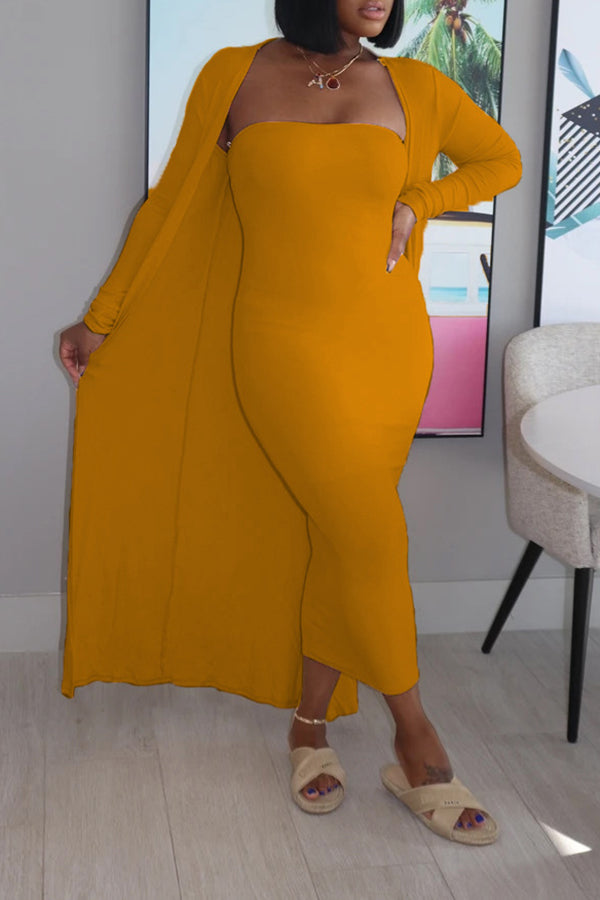 Stylish Bandeau Dress & Cardigan Set