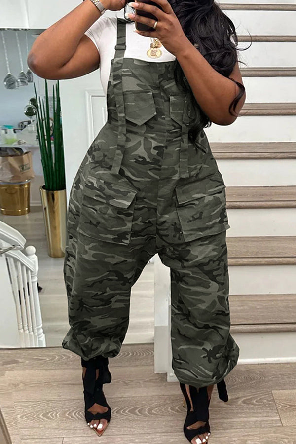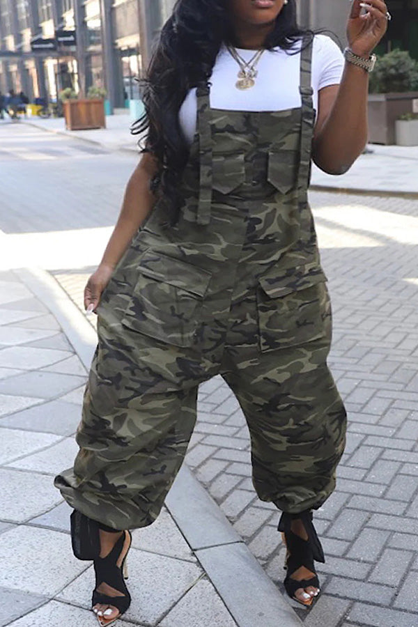 Retro Lazy Style Wide Leg Patch Large Pocket Jumpsuit*