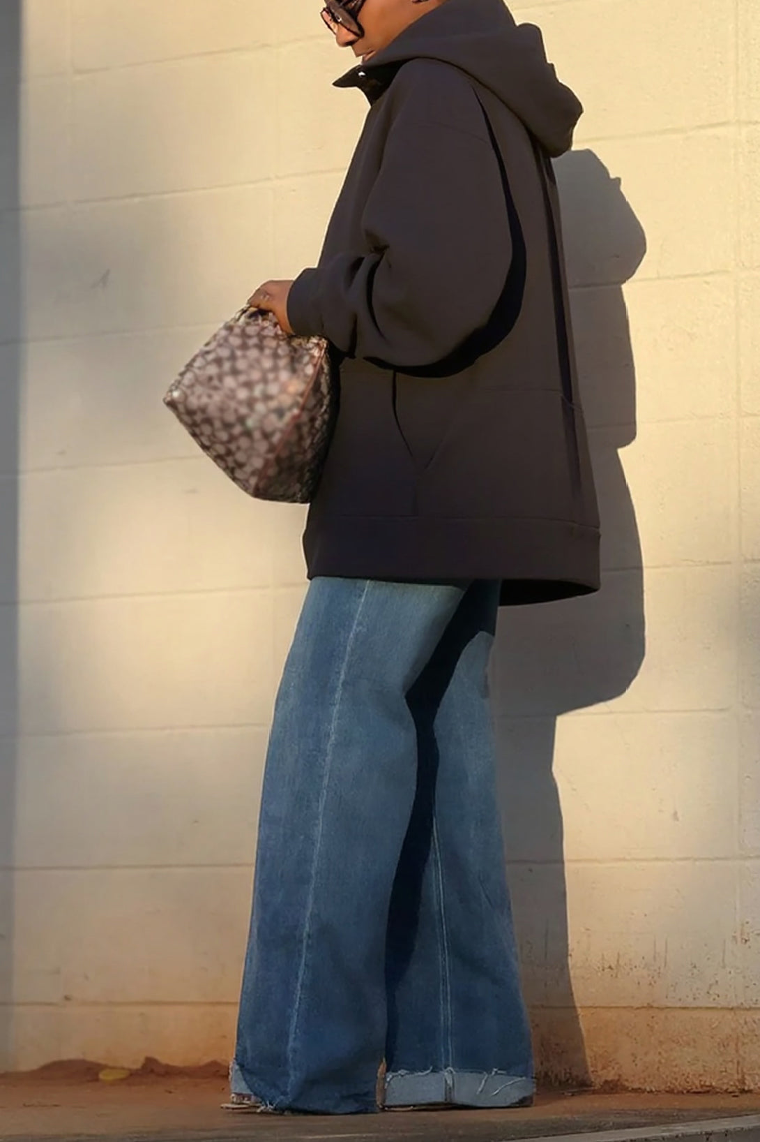 Stay on trend this season in our new casual, hood track top. We especially love the solid color fabric and think this piece will be a new favorite in your closet!