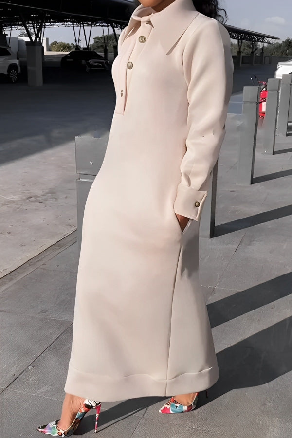 No wardrobe is complete without a solid color dress! Our Casual Lapel Half Button Dress is a must-have addition to your fall wardrobe, with its versatile color and style. It comes in multiple colors, and a soft ?material that hugs your curves perfectly to create an alluring look.Wear this dress to brunch or out on the town??you??re sure to turn heads either way!