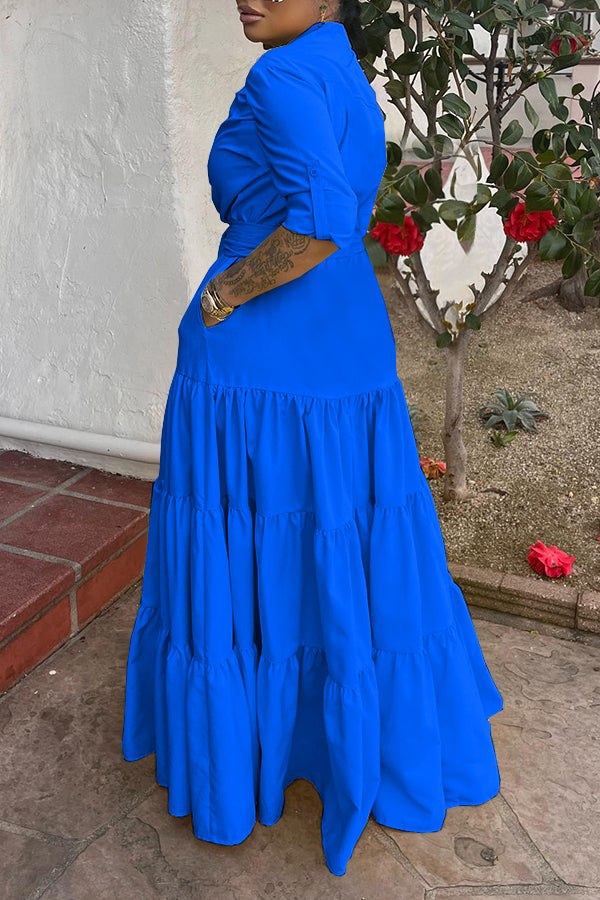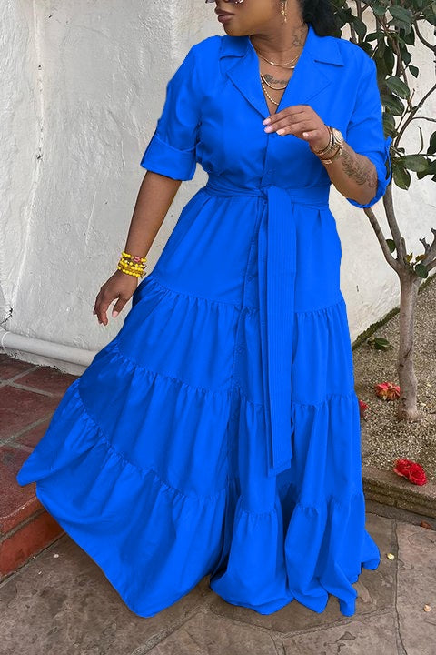 ✔Material: Sunshine Ruffle Hem Maxi Dress is made of high-quality cotton blend fabric, which is soft and breathable. Resistant to fading and hard to see through. ✔ Features: Lapel collar, solid color, high waist, waist belt, layered pleated hem, flowy floor length. ✔CUTE DESIGN: Long skirts for women with ruffle trim, add romantic atmosphere in summer and spring. Women's boho maxi dress that is very flowy and casual. The full-length and ruched high-rise design covers all the right places while complimenting curvy shapes! ✔Coordinating: Wear this casual ruffled high waist dress for women with your favorite necklace, high heels or sandals, a messy high bun and braided bag for a stunning look. You can also wear it with a cropped denim jacket or cardigan in fall and spring. A must-have for your summer wardrobe, this sexy flowy long dress for women is as cute as it is flattering. ✔Occasion??Suitable for any occasion. Casual and formal, graduation dresses, wedding guest dresses, beach dresses, parties, Easter and more.