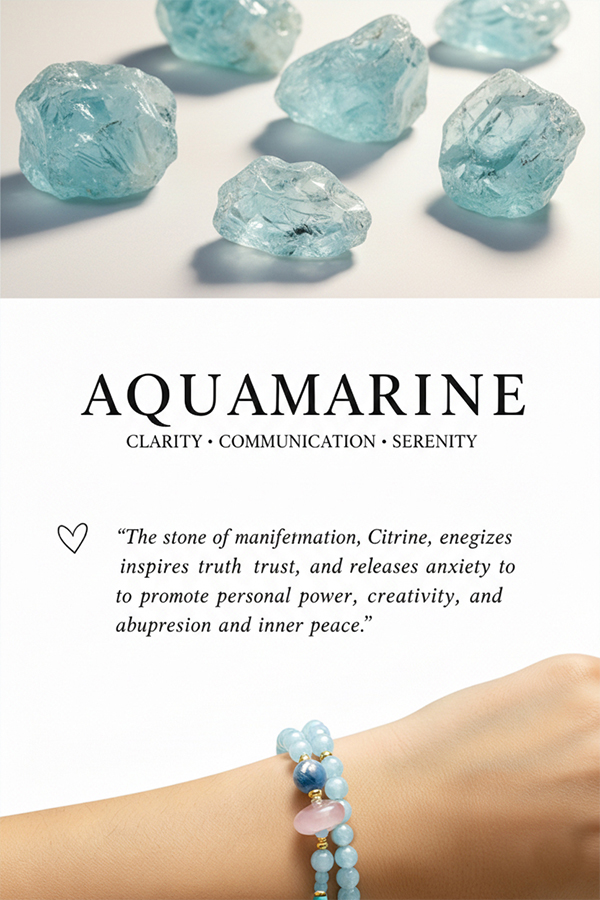 Aquamarine, known as the "emotional purifier," soothes the soul. When feeling angry or anxious, gazing at aquamarine is said to instantly calm you down, giving you a sense of openness and tranquility like facing the vast ocean.