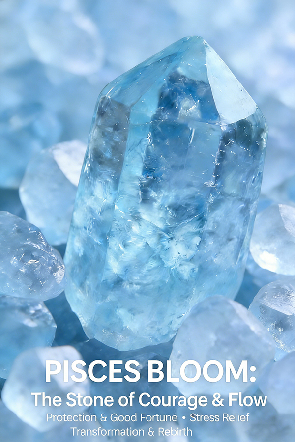 Aquamarine gets its name from its clear, seawater-like blue color and belongs to the beryl family (related to emeralds).