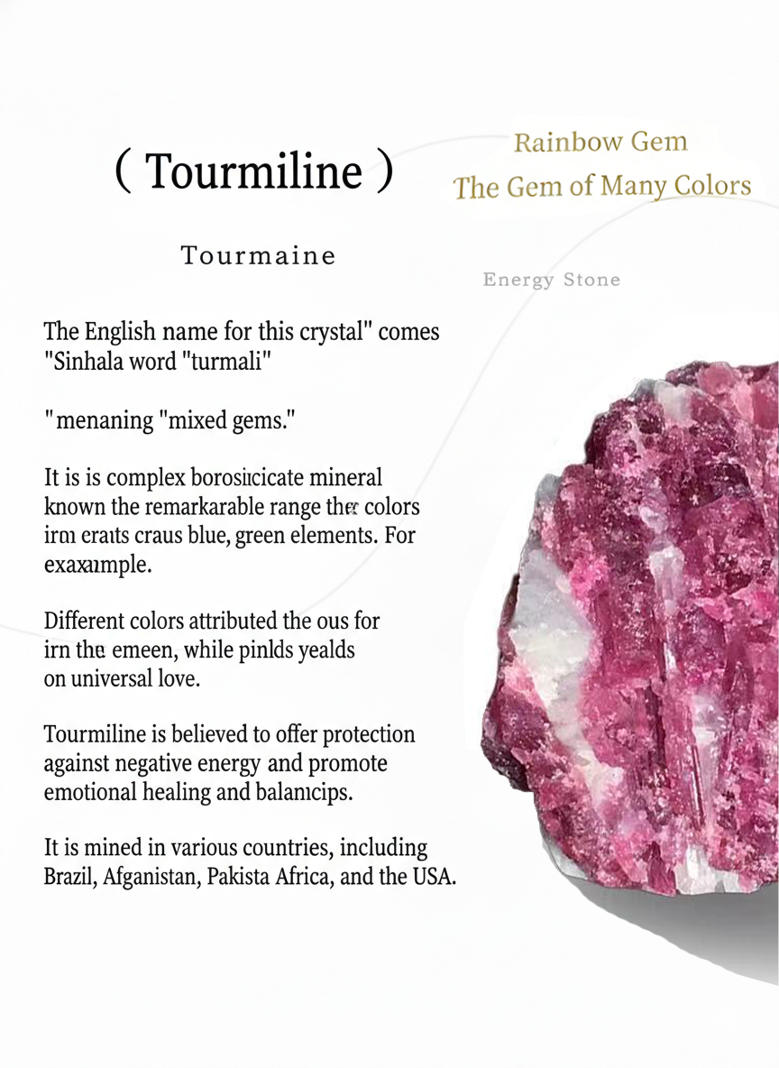 Tourmaline is known as the "rainbow that fell to earth," and is the most colorful gemstone in nature. Its scientific name is tourmaline, named for its unique piezoelectric and thermoelectric properties (it generates an electric charge when heated, attracting dust).