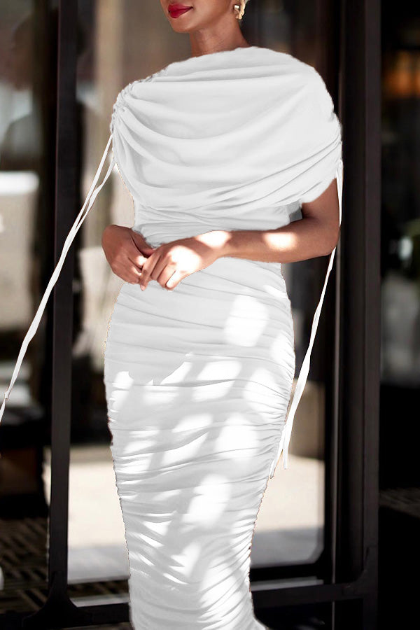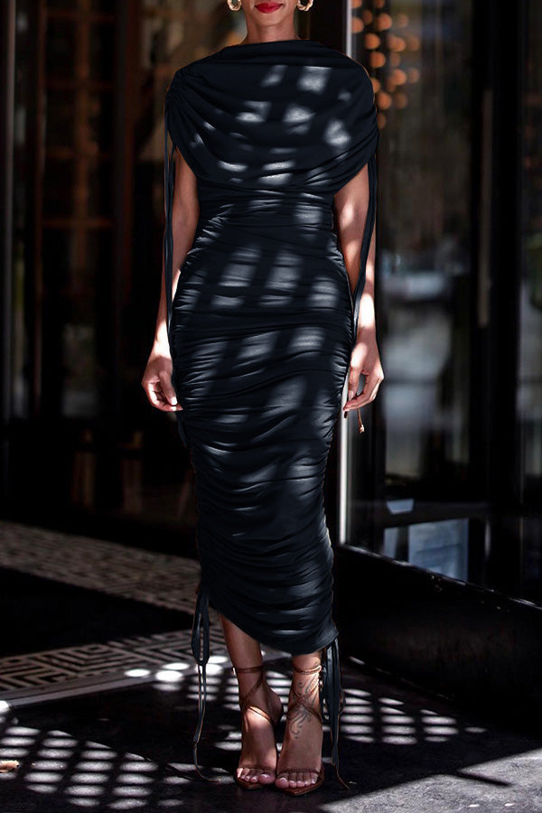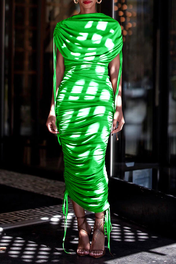 Drawstring Ruched Dress: This dress is crafted from a comfortable premium cotton blend. The fabric feels very nice and soft against the skin.