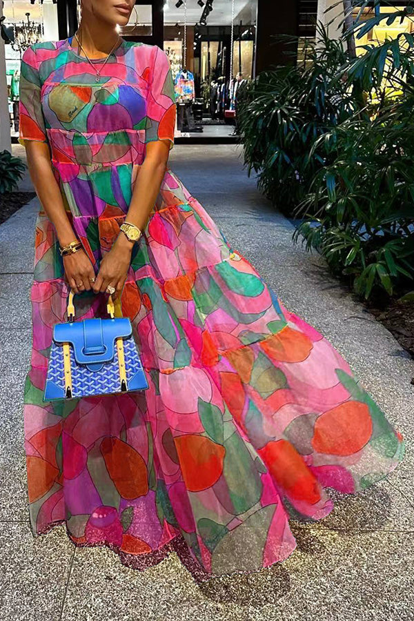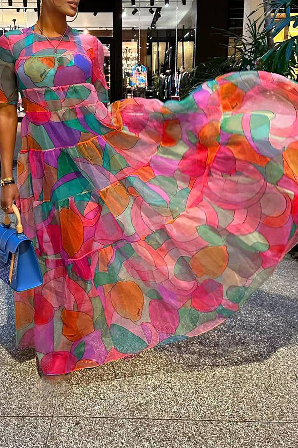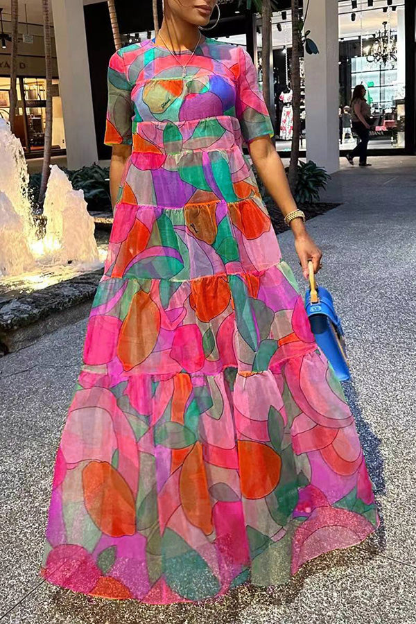 This dress' vibrant, multi-colour abstract pattern will make a statement wherever you take her, and will bring out even more radiance in you!