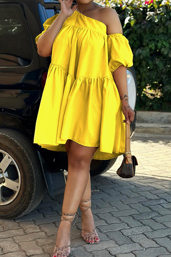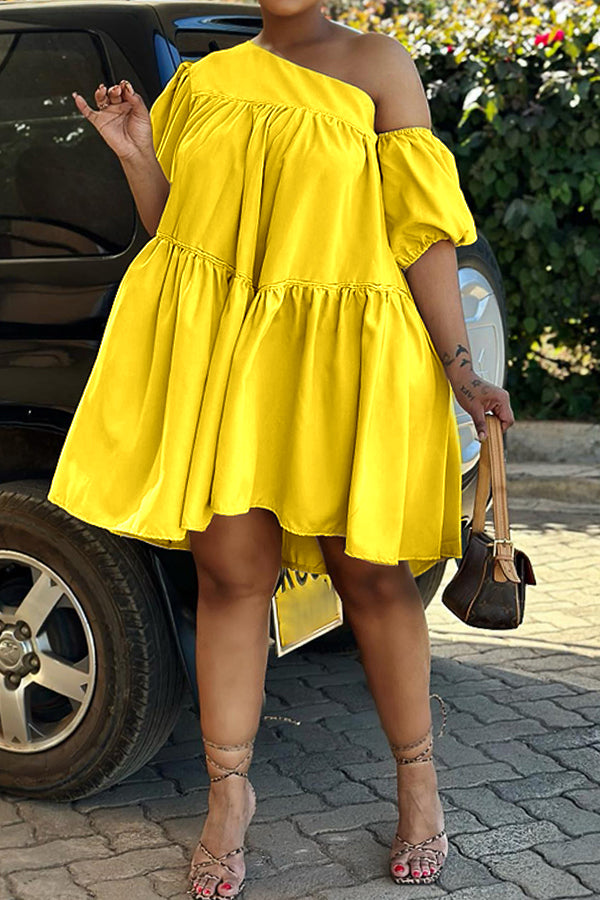Elevate your style with a Summer Oblique Shoulder Ruffle Hem Dress. Perfect for a night out with friends or a special evening event. The soft material adds a sophisticated touch to your look. Pair it with your favorite heels and accessories for a complete outfit. Stand out and make a statement with this fashionable piece.