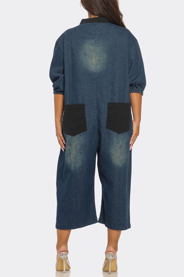If you're looking for a denim, round neck jumpsuit look no further than this! Our stylish will add an instant style upgrade to your closet.