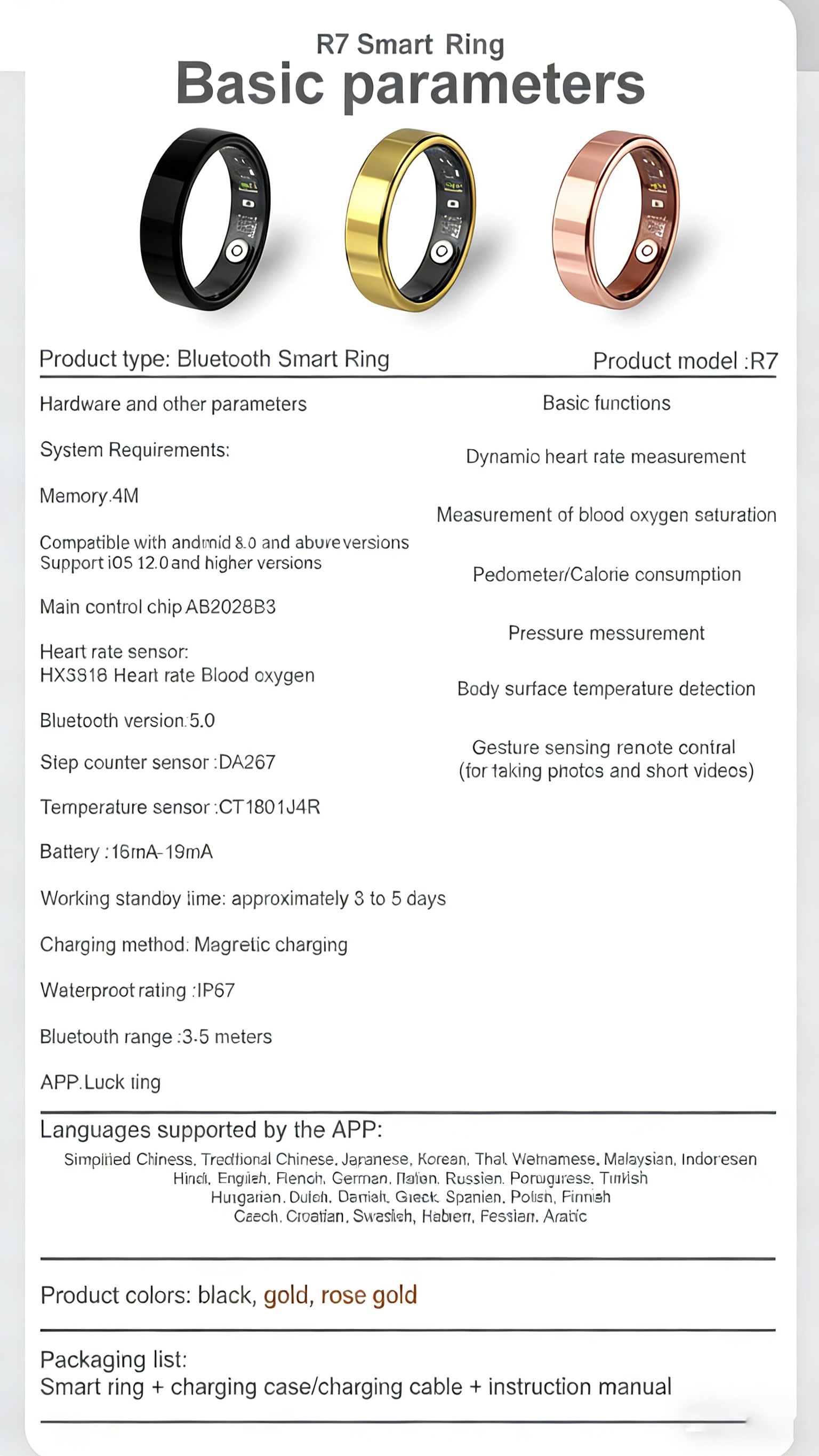 This smart ring can monitor heart rate, sleep, blood oxygen levels, and exercise activity. It uses wireless Bluetooth connectivity, making it very convenient. It's a fantastic gift, whether for yourself or for family and friends.