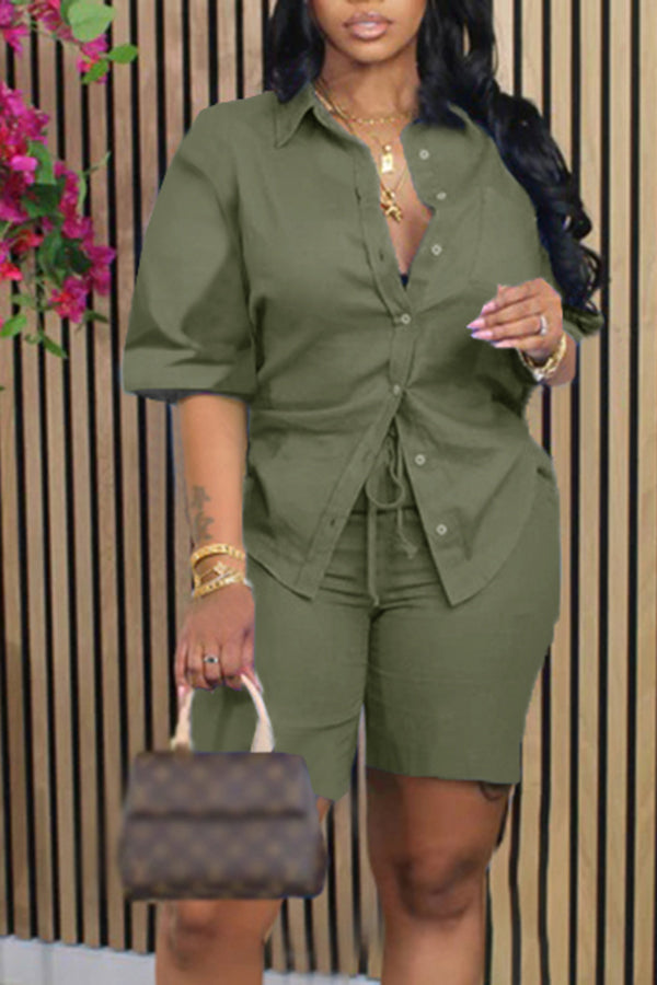 Your summer basics collection needs an update and this shorts set makes a great addition! Featuring a shirt collar, drawstring design, and button front. Pair it with heels and your favorite bag for a casual and stylish look.